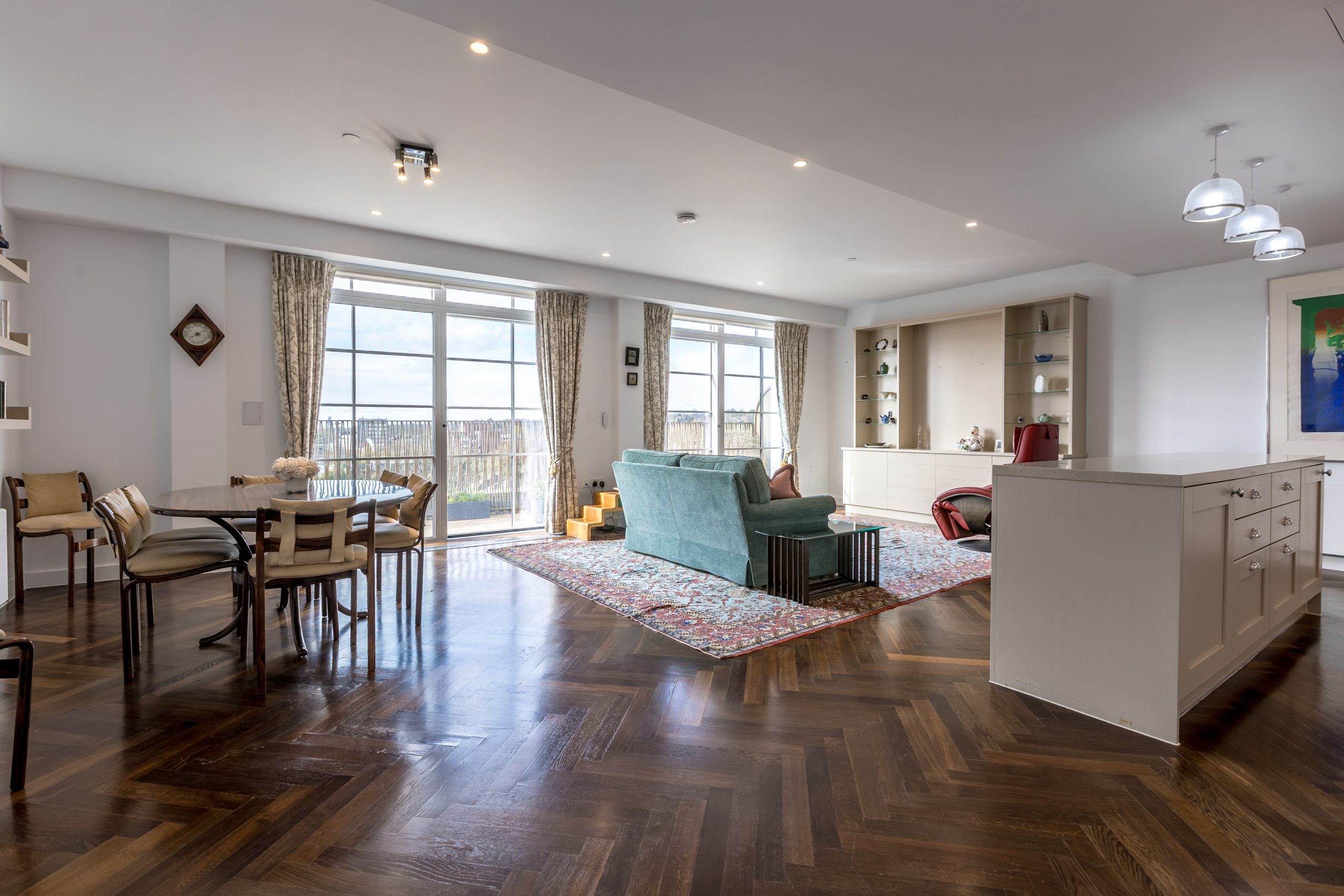 - Contemporary open-plan kitchen with integrated appliances and generous living space