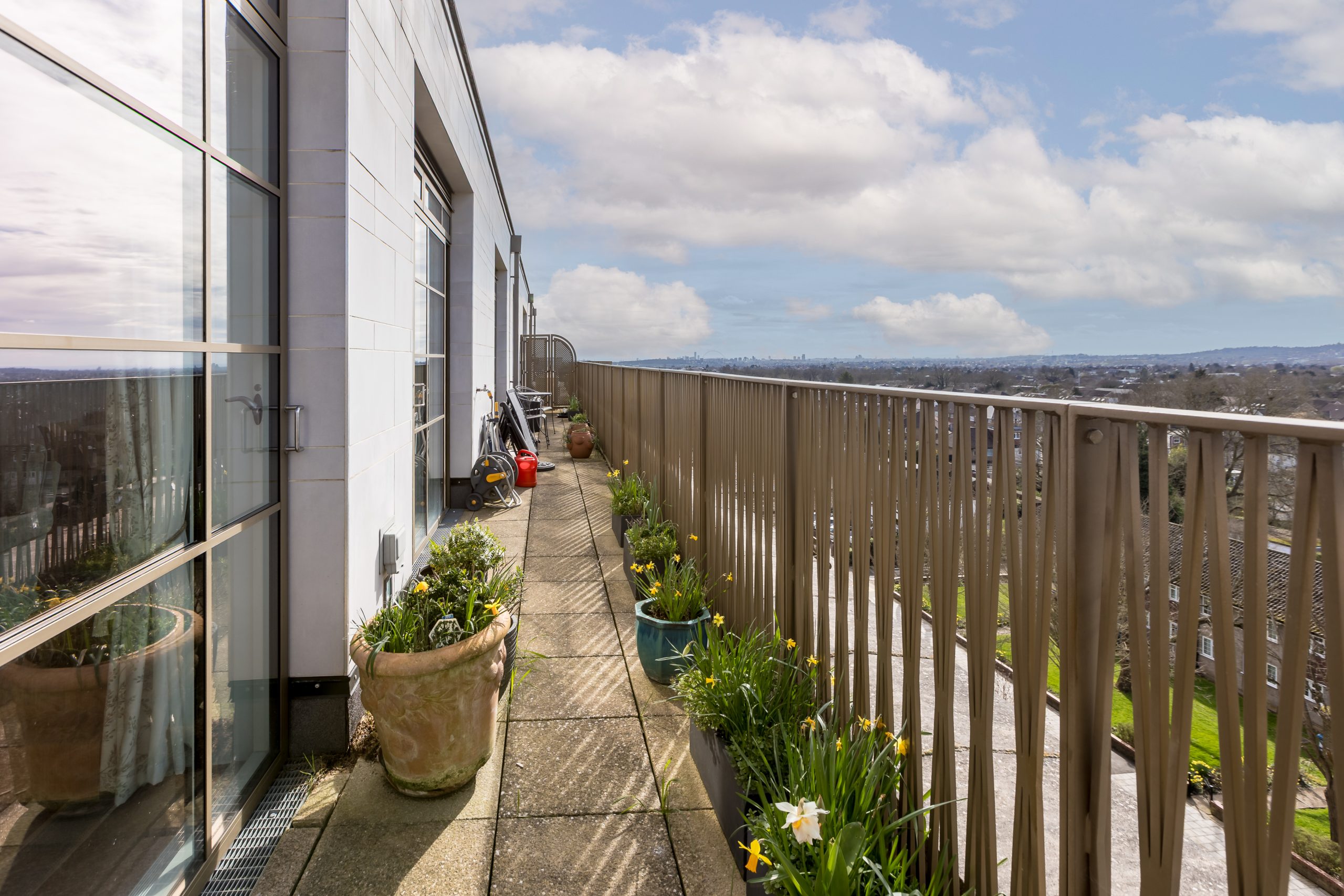 - Extensive west facing balcony with living and bedroom area leading to it
