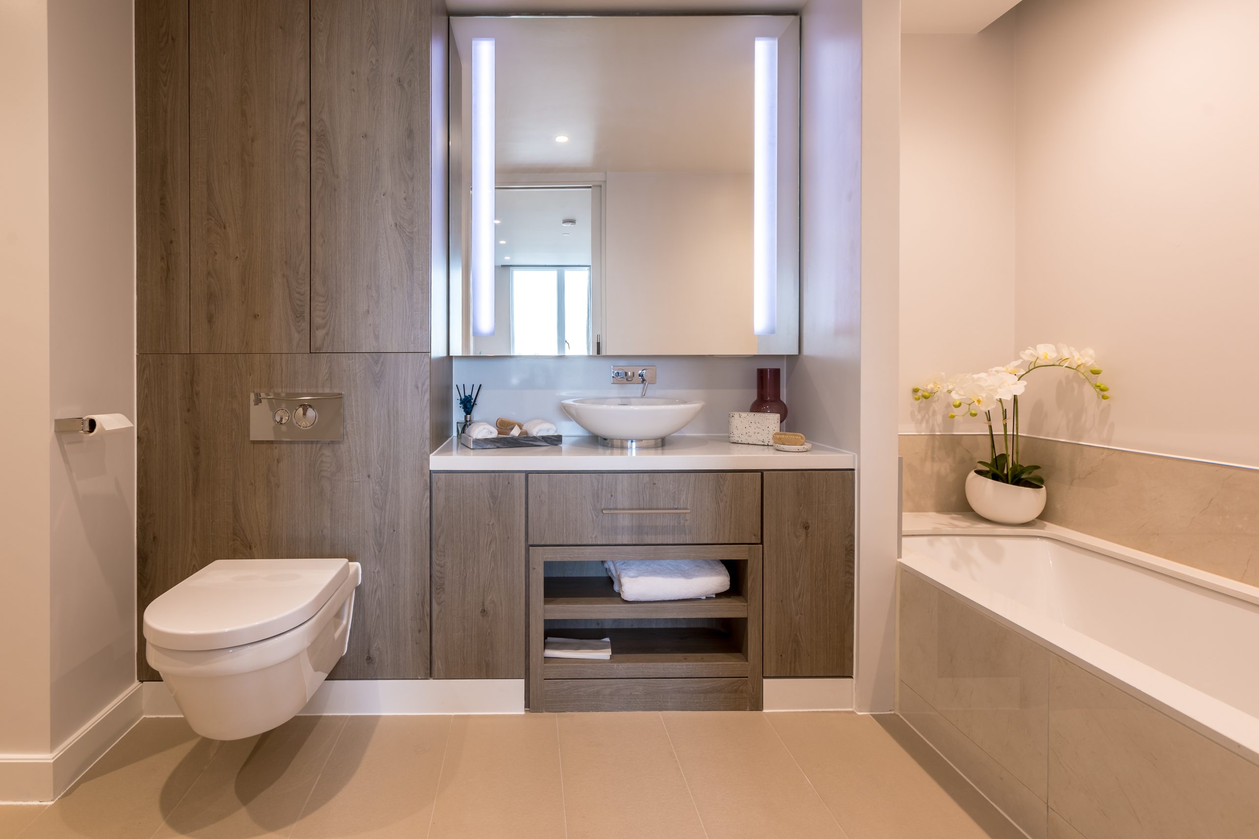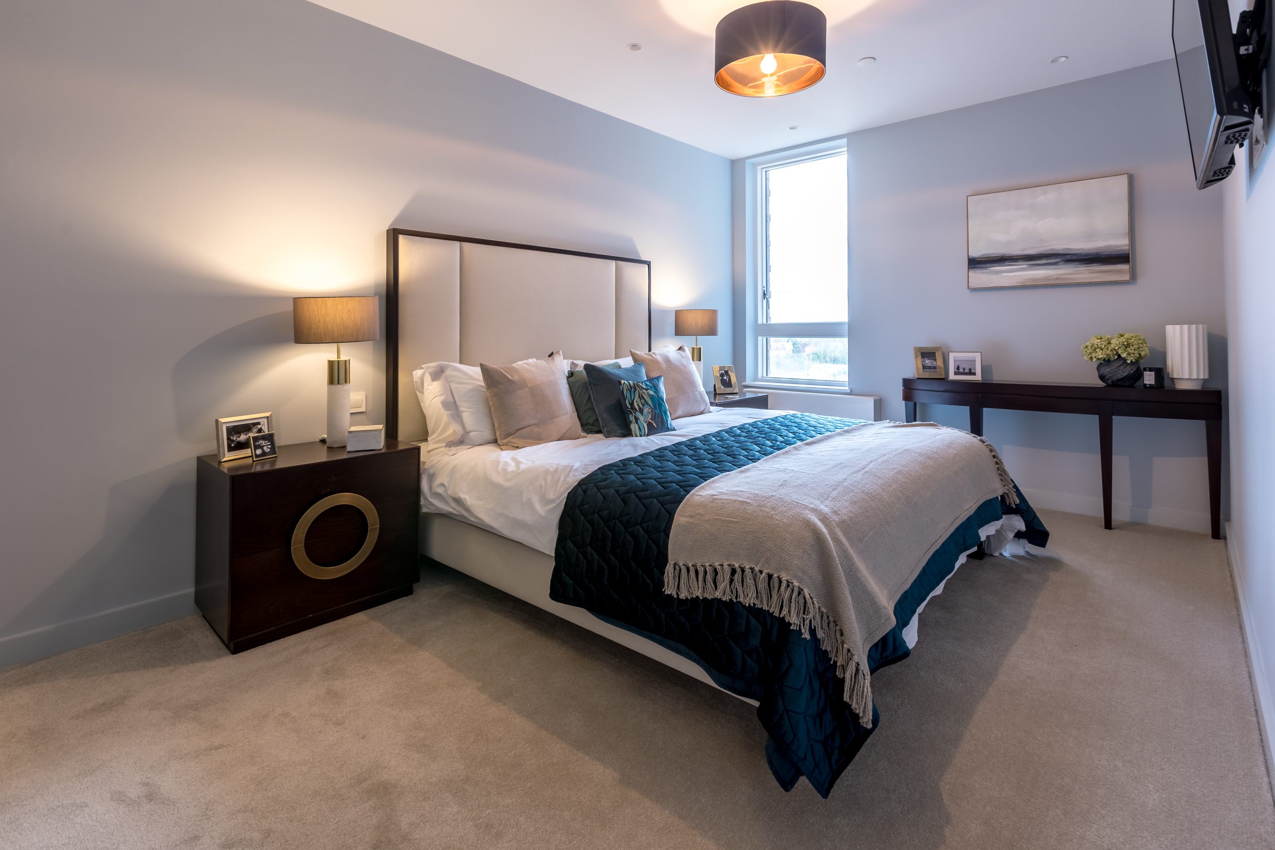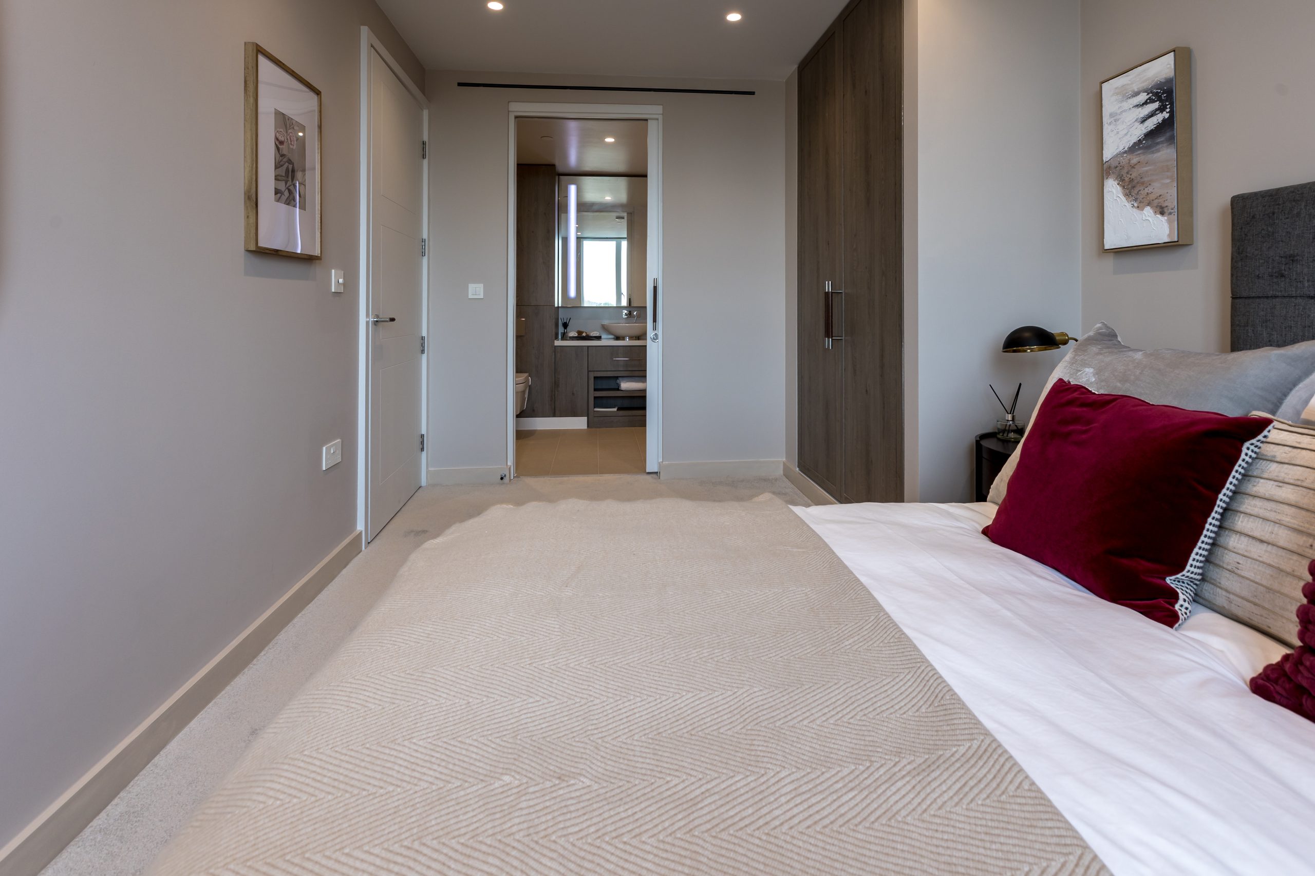 The impressive master bedroom features a generous dressing room and an ensuite shower room, with walk-in shower. The second bedroom is a good size and connects to a Jack and Jill bathroom with a bath.